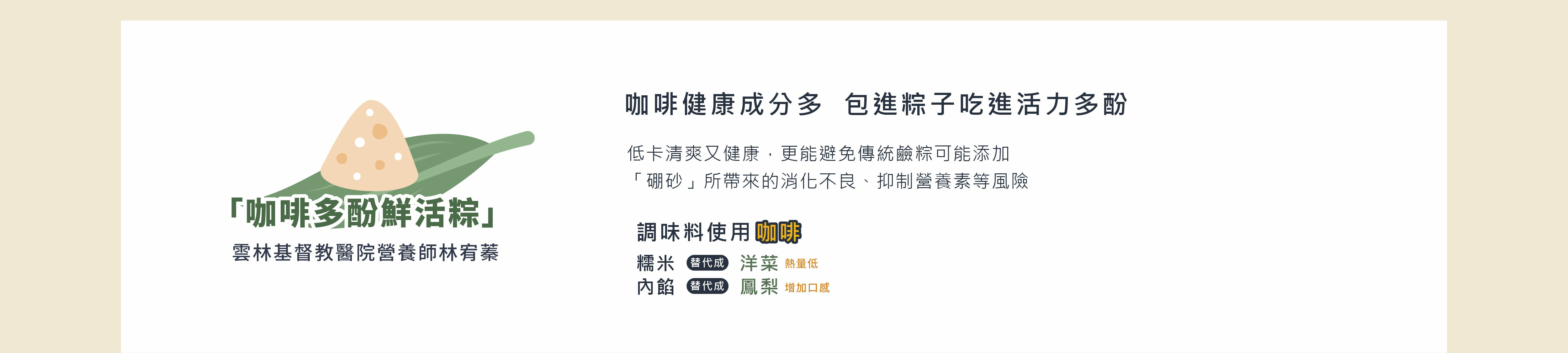 噹啷~連假親子時間到囉!擔心糯米吃太多會有負擔,不妨來看看營養師怎麼建議,動手DIY做做「咖啡多酚粽」健康養身又營養呦!